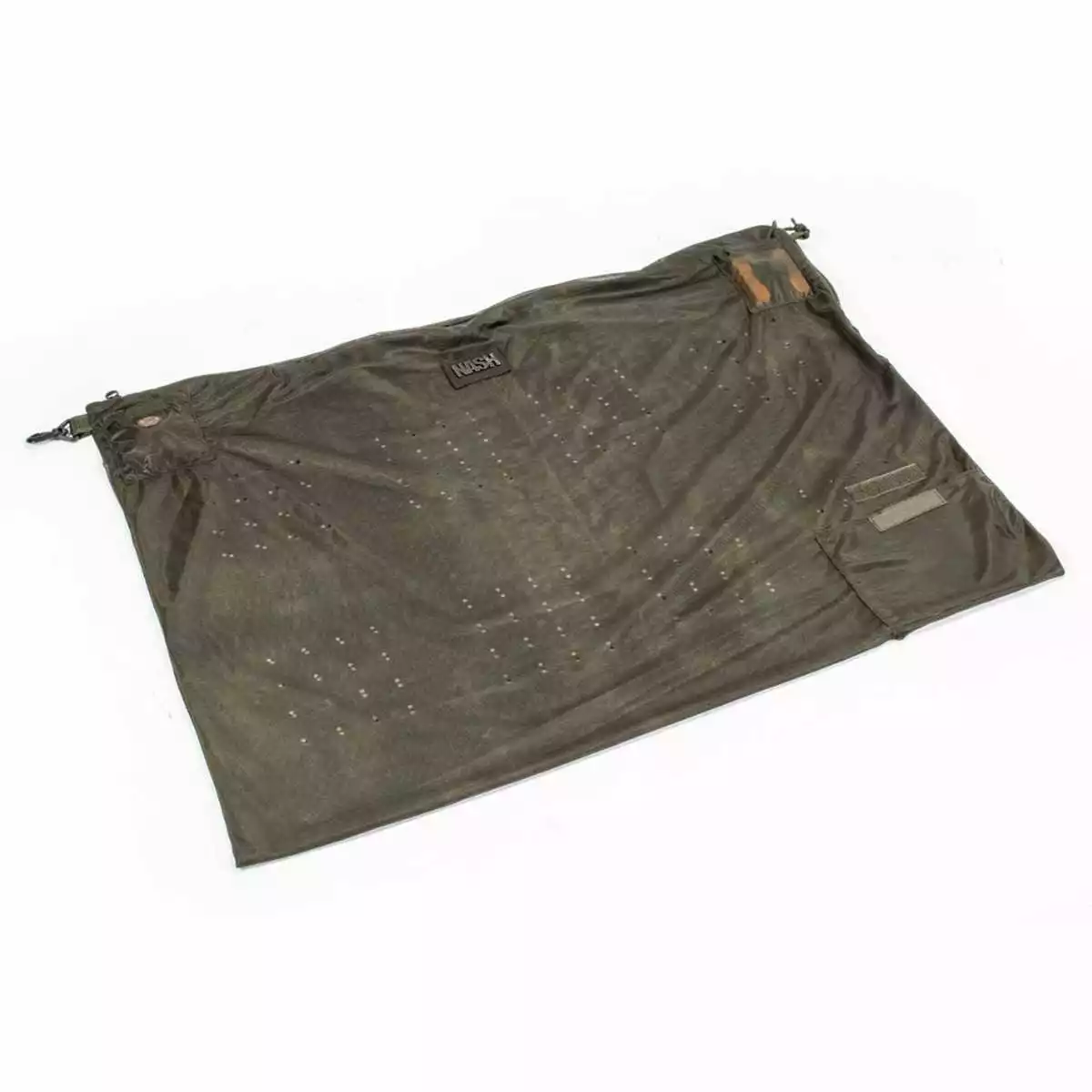 Beim Carp Sack handelt es sich, um einen Karpfensack, welcher hauptsächlich im beliebten Nash-Grün gehalten ist. Der Blickfang sind allerdings ganz klar das Nash Logo auf einer kleinen Außentasche in einer Ecke, sowie die Aufschriften Nash mittig am oberen Rand des Sacks.