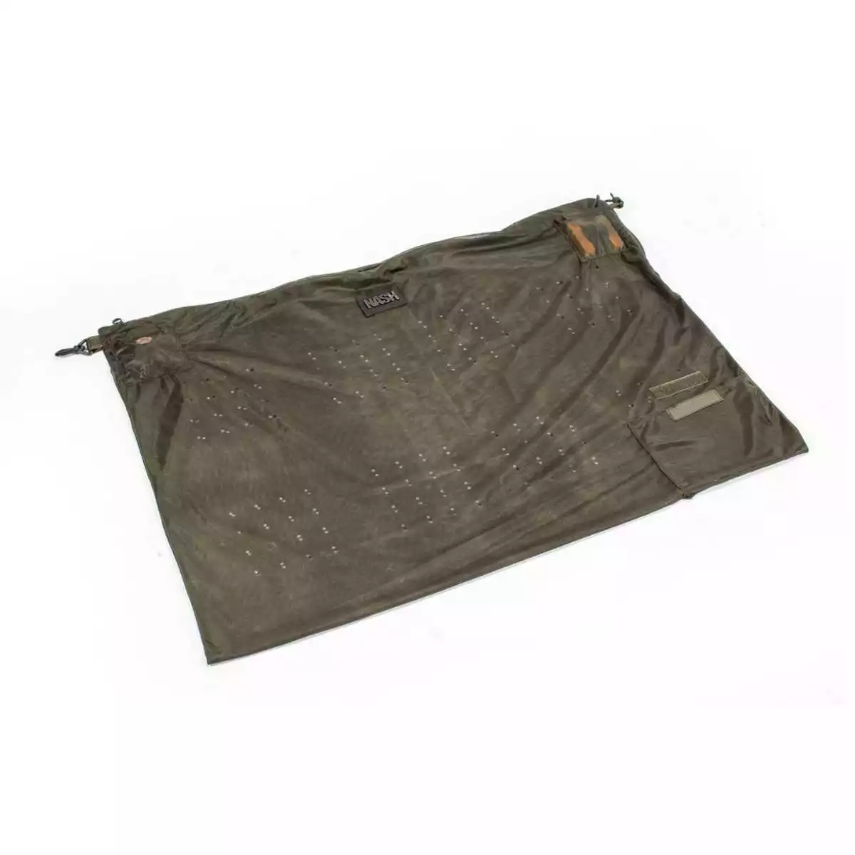 Beim Carp Sack handelt es sich, um einen Karpfensack, welcher hauptsächlich im beliebten Nash-Grün gehalten ist. Der Blickfang sind allerdings ganz klar das Nash Logo auf einer kleinen Außentasche in einer Ecke, sowie die Aufschriften Nash mittig am oberen Rand des Sacks.